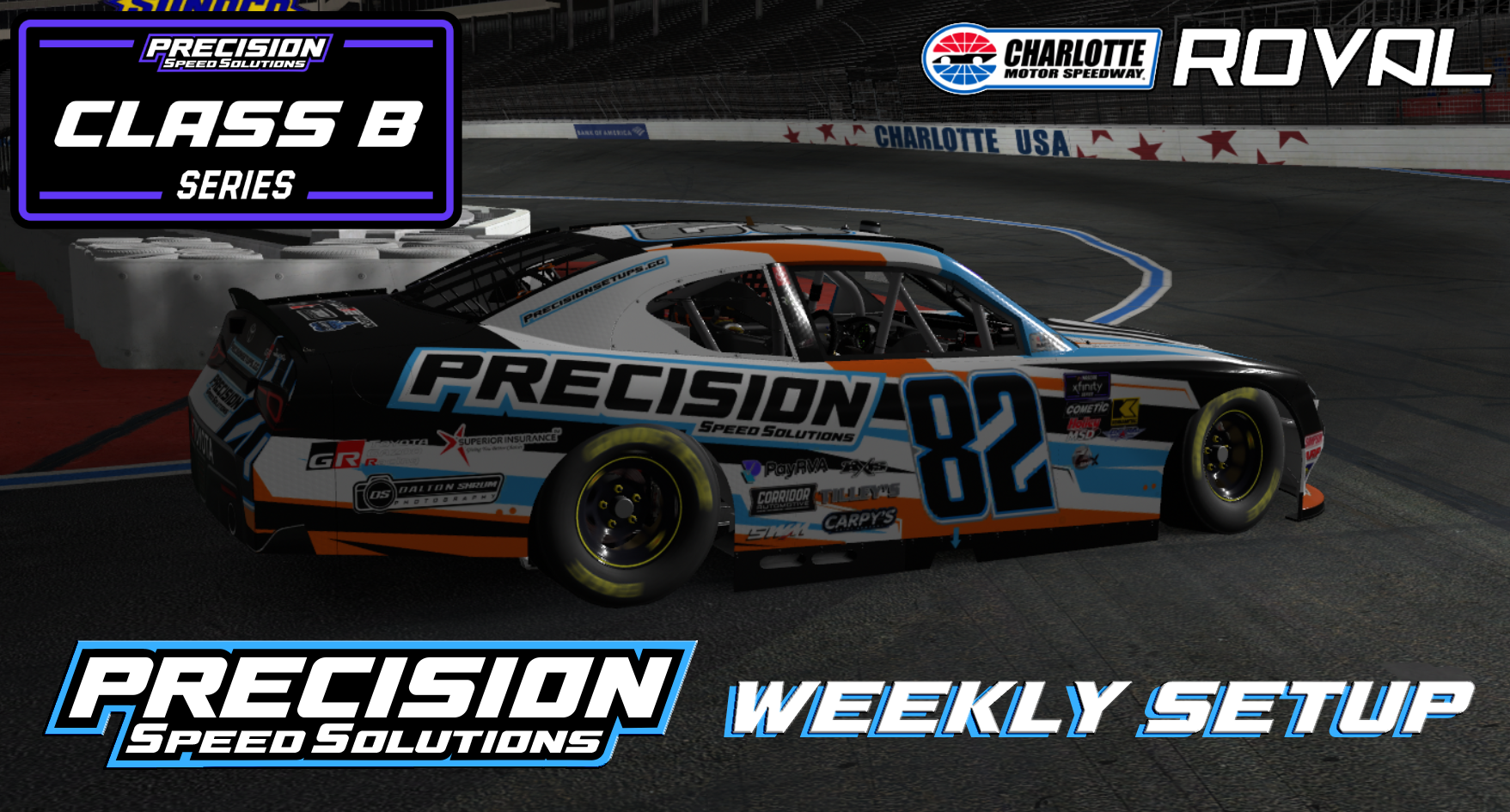 With our Precision Xfinity Setup, you’ll have the stability to ride the curbs and the confidence to stand on the brakes. The setup is balanced to handle the high banks of the oval before transitioning smoothly into the tight infield section, making the car feel consistent and manageable.